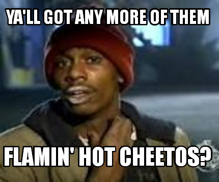 Flaming hot cheetos ! That scene-somebody throw some cold water on me